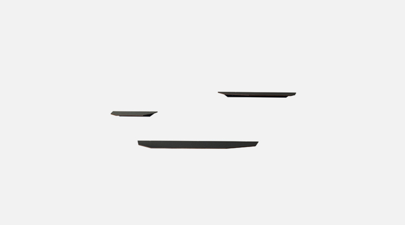 Ibride set van 3 stylish wandplanken in gebrushed zwart laminaat. Ontwerp van Rachel & Benoit Convers. Formaat: 1. 65x14x2.5 | 2. 41.5x13x2.5 | 3. 23.5x12x2.5 cm Made in France.